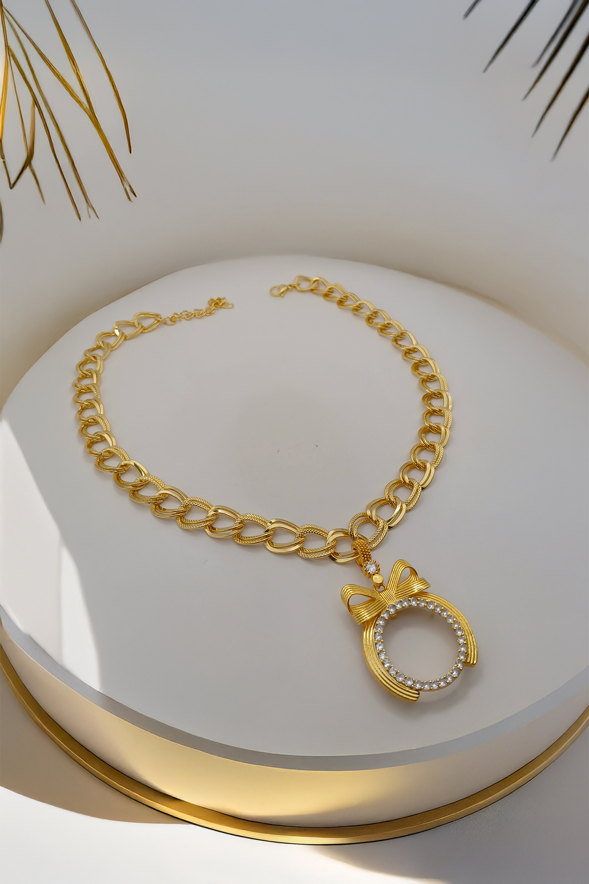 Çeyrekli Fiyonk Kolye – Samanyolu Zincirli, Çeyrek Altın Uyumlu Altın Çerçeveli Kolye