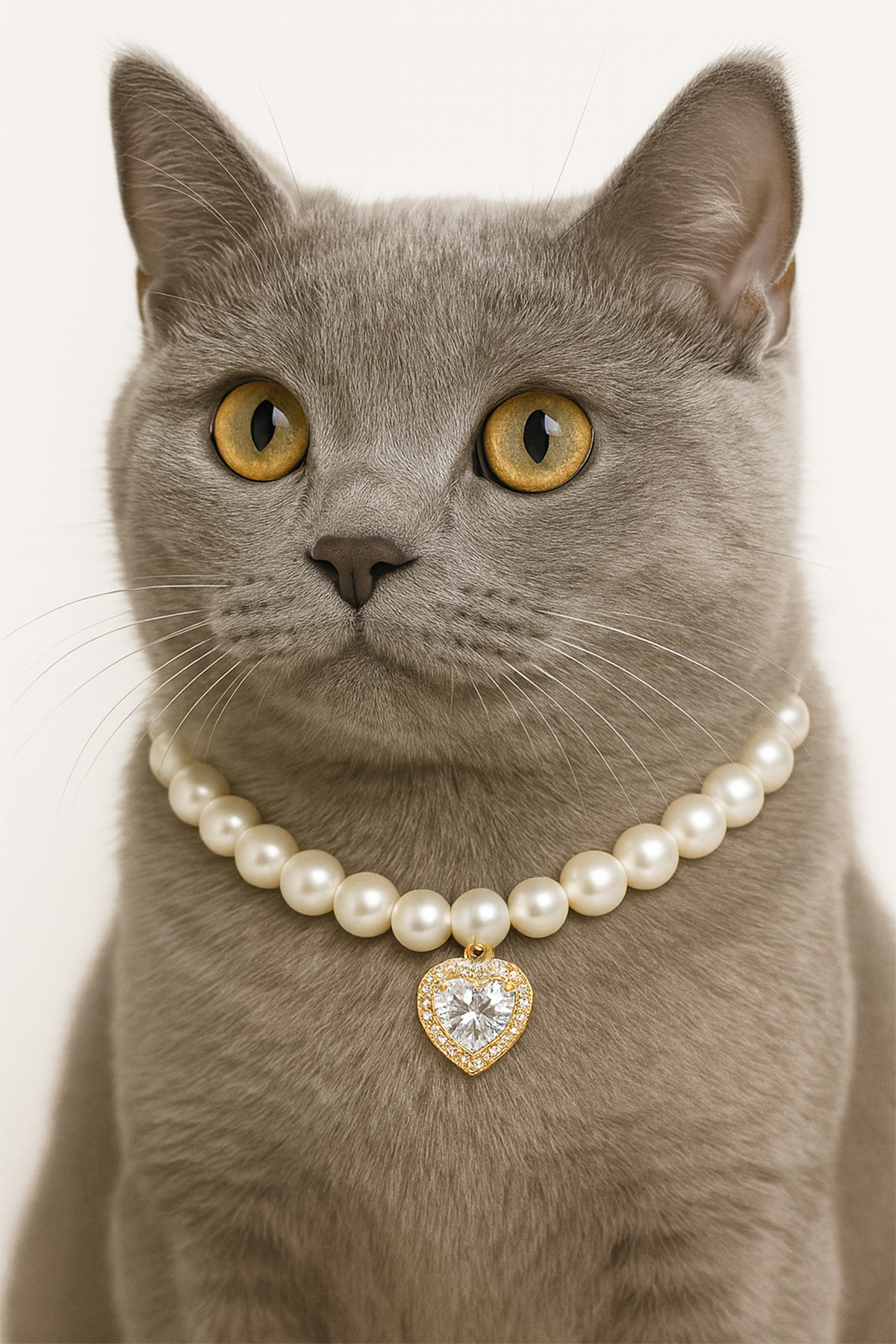 İnci Kalpli Kedi Kolyesi – Kedi Oyuncağı Hediyeli, Köpek Künyesi Uyumlu, Kedi Giyim